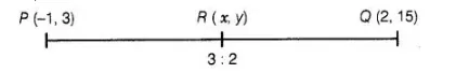 Suppose, $R(x, y)$ be the point which divides the line segment joining the points $P(-1,3)$ and $Q(2,5)$ in the ratio $3: 2$.
