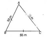 $A B=a=50 m, B C=b=65 m$ and $C A=c=65 m$.
