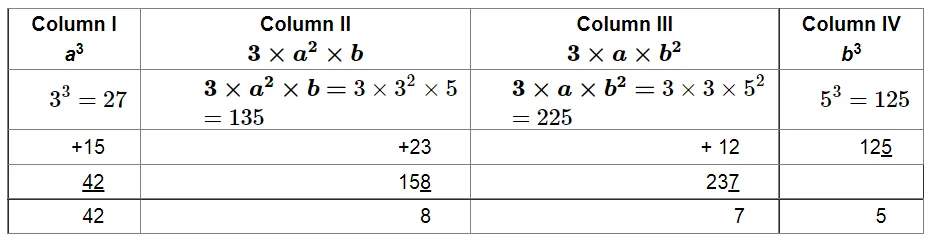 We have to find the cube of 35 using column method. We have: $a=3$ and $b=5$