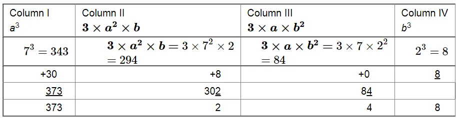 We have to find the cube of 72 using column method. We have: $a=7$ and $b=2$