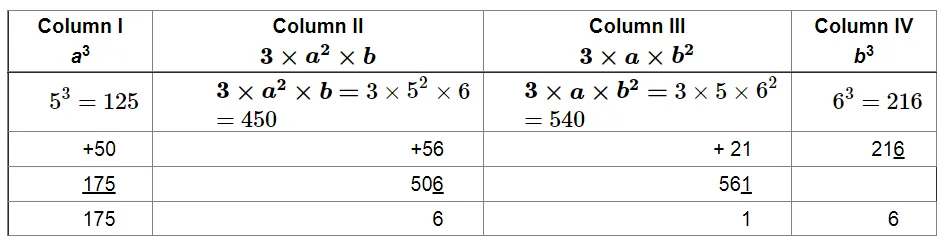 We have to find the cube of 56 using column method. We have: $a=5$ and $b=6$