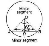 Given that, length of chord of a circle, $A B=5 \mathrm{~cm}$ and central angle of the sector $A O B A(\theta)=90^{\circ}$