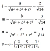 Find the direction cosines of the normal to the plane $2 x+3 y-z=4$.