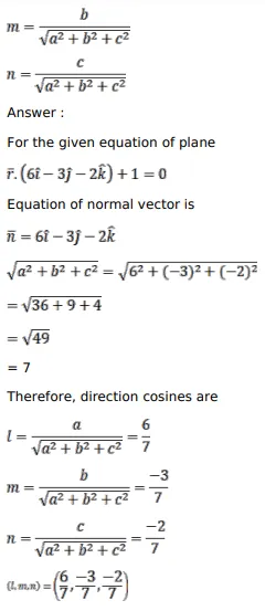 Find the direction cosines of the perpendicular from the origin to the plane $\bar{r} \cdot(6 \hat{i}-3 \hat{j}-2 \hat{k})+1-0$.