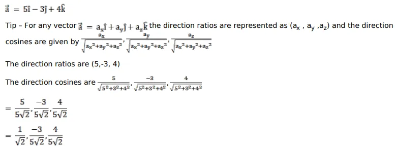 Find the direction ratios and direction cosines of the vector $\vec{a}=(5 \hat{i}-3 \hat{j}+4 \hat{k})$.