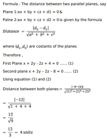 Find the distance between the parallel planes $x+2 y-2 z+4=0$ and $x+2 y-2 z-8=0$.