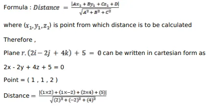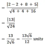 Find the distance of the point $(1,1,2)$ from the plane $\overrightarrow{\mathrm{r}} \cdot(2 \hat{\mathrm{i}}-2 \hat{\mathrm{j}}+4 \hat{\mathrm{k}})+5=0$.