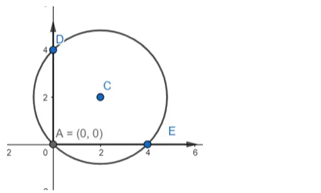 D(0, b), E(a, 0) and A(0, 0) lies on the circle. C is the centre.