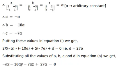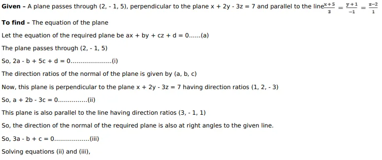 Find the equation of a plane passing through the point $(2,-1,5)$, perpendicular to the plane $x+2 y-3 z=7$ and parallel to the line