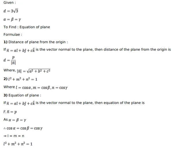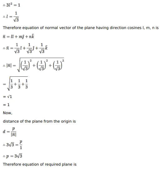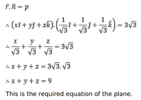 Find the equation of a plane which is at a distance of $3 \sqrt{3}$ units from the origin and the normal to which is equally inclined to the coordinate axes.