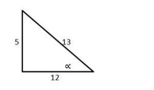 From the figure: $\cos \propto=\frac{\text { adj }}{\text { hyp }}=\frac{12}{13}$ and $\sin \propto=\frac{\text { opp }}{\text { hyp }}=\frac{5}{13}$