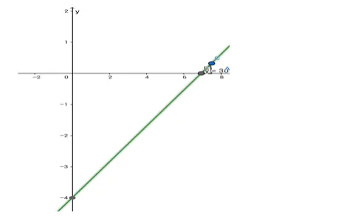 The equation of the line is $y=\frac{1}{\sqrt{3}} x-4$