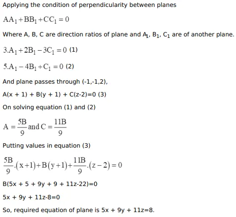 Find the equation of the plane passing through the point $A(-1,-1,2)$ and perpendicular to each of the planes $3 x+2 y-3 z=1$ and $5 x-4 y+$ $z=5$.