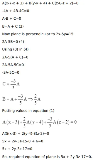 Find the equation of the plane through the points $A(3,4,2)$ and $B(7,0,6)$ and perpendicular to the plane $2 x-5 y=15$.