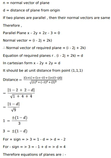 Find the equation of the planes parallel to the plane $x-2 y+2 z-3=0$, each one of which is at a unit distance from the point $(1,1,1)$.