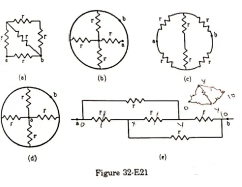 Find the equivalent resistances of the networks shown in figure (32-E21) between the points a and b.