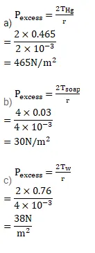 Surface tension of mercury, soap solution and water are $0.465 \mathrm{~N} / \mathrm{m}, 0.03 \mathrm{~N} / \mathrm{m}$ and $0.076 \mathrm{~N} / \mathrm{m}$ respectively.