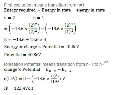 Find the first excitation potential of $\mathrm{He}^{+}$ion. Find the ionization potential of $\mathrm{Li}^{++}$ion.