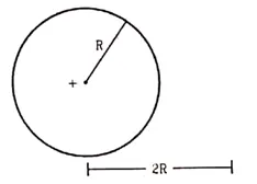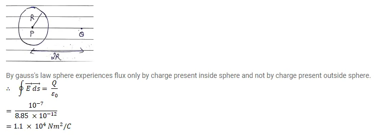 Find the flux of the electric field through a spherical surface of radius $\mathrm{R}$ due to a charge of $10^{-7} \mathrm{C}$ at the centre and another equal charge at a point $2 R$ away from the centre.