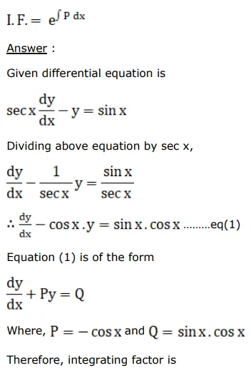 $\sec x \frac{d y}{d x}-y=\sin x$