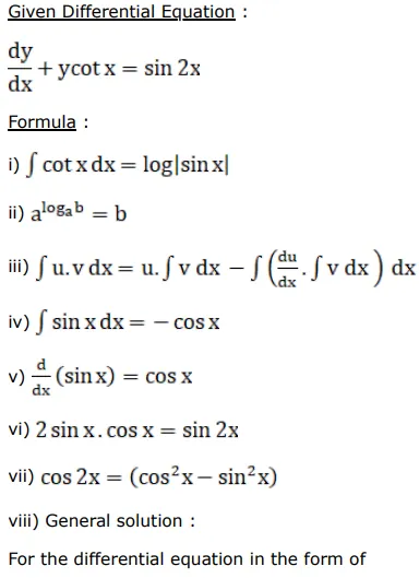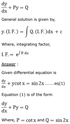 $\frac{d y}{d x}=y \cot x=\sin 2 x$