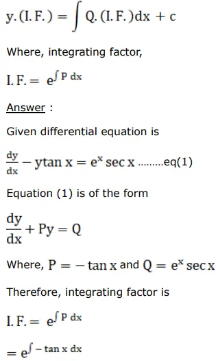 $\frac{d y}{d x}-y \tan x=e^{x} \sec x$