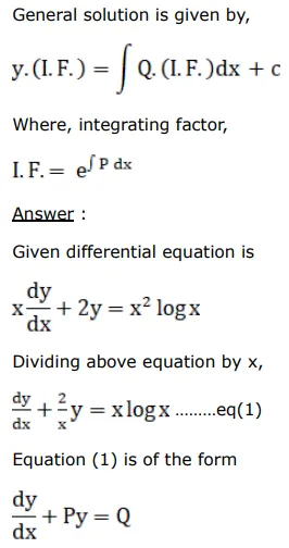 $x \frac{d y}{d x}+2 y=x^{2} \log x$