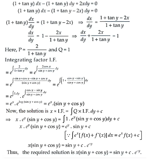 Given, (1 + tan y) (dx – dy) + 2xdy = 0