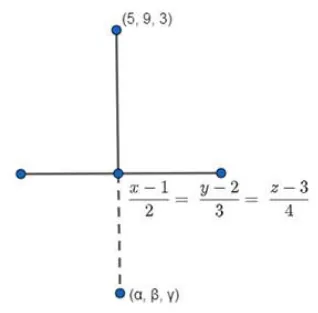 Find the image of the point $(5,9,3)$ in the line $\frac{x-1}{2}=\frac{y=2}{3}=\frac{z-3}{4}$.