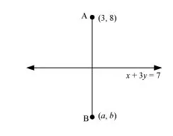Slope of $\mathrm{AB}=\frac{b-8}{a-3}$, while the slope of line $(1)=-\frac{1}{3}$