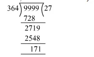 Now, to we divide 9999 by 364 and subtract the remainder from 9999 to get the number completely divisible by 4, 7 and 13.