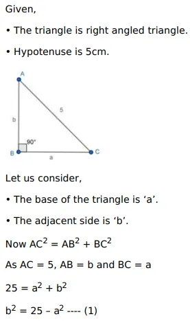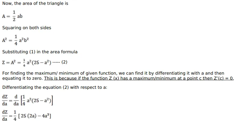 Find the largest possible area of a right-angles triangle whose hypotenuse is $5 \mathrm{~cm}$.