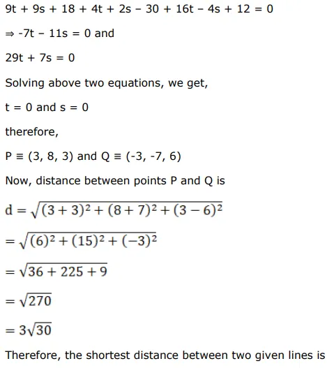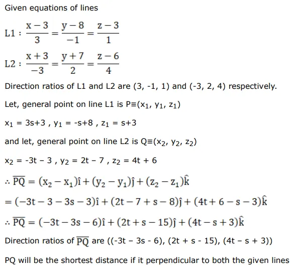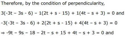 $\frac{x-3}{3}=\frac{y-8}{-1}=z-3$ and $\frac{x+3}{-3}=\frac{y+7}{2}=\frac{z-6}{4} .$