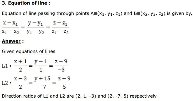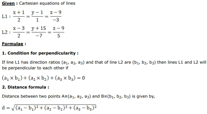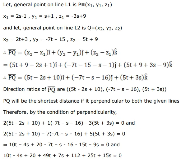 $\frac{x+1}{2}=\frac{y-1}{1}=\frac{z-9}{-3}$ and $\frac{x-3}{2}=\frac{y+15}{-7}=\frac{z-9}{5}$.