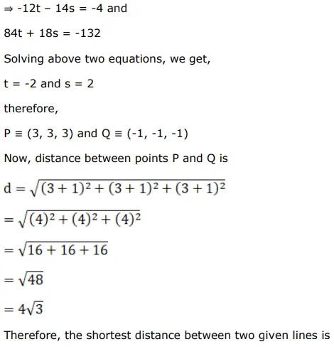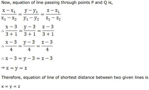 Find the length and the equations of the line of shortest distance between the lines given by: