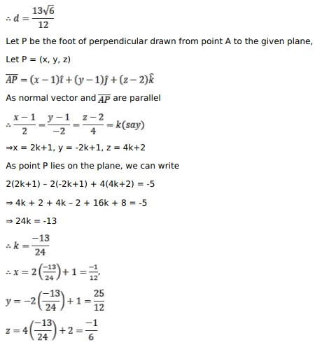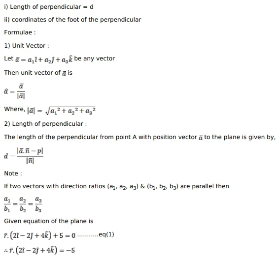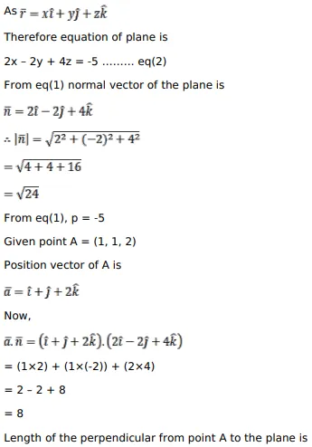 Find the length and the foot of the perpendicular drawn from the point $(1,1,2)$ to the plane $\bar{r} \cdot(2 \hat{i}-2 \hat{j}+4 \hat{k})+5-0$.