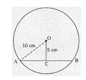 Find the length of a chord which is at a distance of 5 cm from the centre of a circle of radius 10 cm.