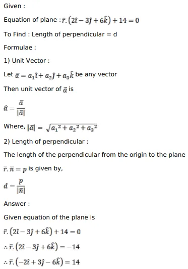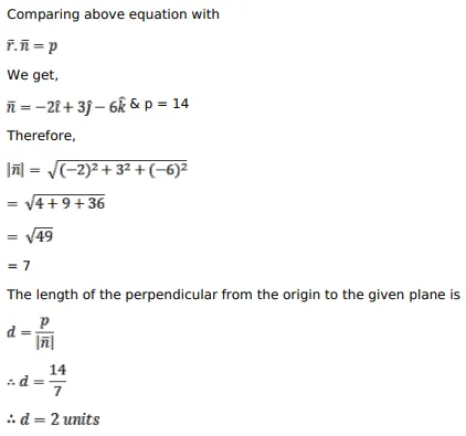 Find the length of perpendicular from the origin to the plane $\bar{r} \cdot(2 \hat{j}-3 \hat{j}+6 \hat{k})+14-0$.