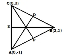 Find the lengths of the median of ∆ABC whose vertices are A(0, −1), B(2, 1) and C(0, 3).