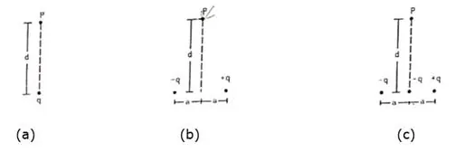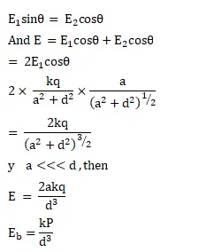 Find the magnitude of the electric field at the point $p$ in the configuration shown in figure (29.E7) for $d>>a$. take $2 q a=p$.