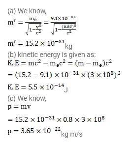 Find the mass, kinetic energy and the momentum of an electron moving at $0.8 \mathrm{c}$.