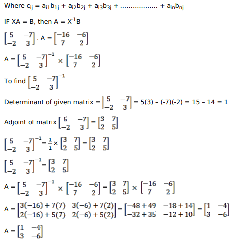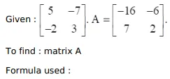Find the matrix A such that $\left[\begin{array}{cc}5 & -7 \\ -2 & 3\end{array}\right], A=\left[\begin{array}{cc}-16 & -6 \\ 7 & 2\end{array}\right]$.