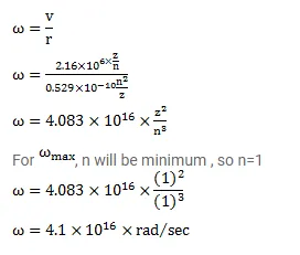 Find the maximum angular speed of the electron of a hydrogen atom in a stationary orbit.