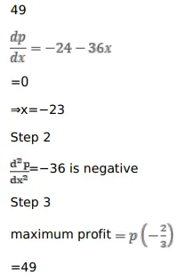 Find the maximum profit that a company can make, if the profit function is given by $\mathrm{p}(\mathrm{x})=41+24 \mathrm{x}-18 \mathrm{x}^{2}$