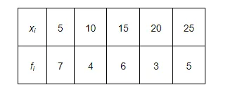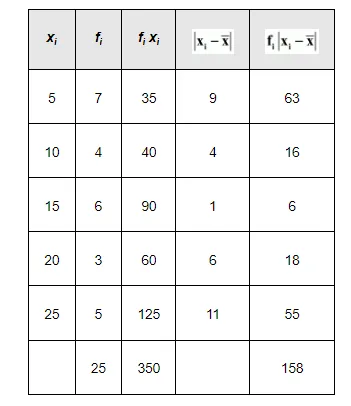 $\therefore \overline{\mathrm{X}}=\frac{1}{\mathrm{~N}} \sum_{\mathrm{i}=1}^{5} \mathrm{f}_{\mathrm{i}} \mathrm{x}_{\mathrm{i}}=\frac{1}{25} \times 350=14$