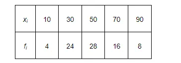 $\therefore \overline{\mathrm{x}}=\frac{1}{\mathrm{~N}} \sum_{\mathrm{i}=1}^{5} \mathrm{f}_{\mathrm{i}} \mathrm{x}_{\mathrm{i}}=\frac{1}{80} \times 4000=50$