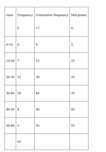 Median $=1+\frac{\frac{\mathrm{N}}{2}-\mathrm{C}}{\mathrm{f}} \times \mathrm{h}$