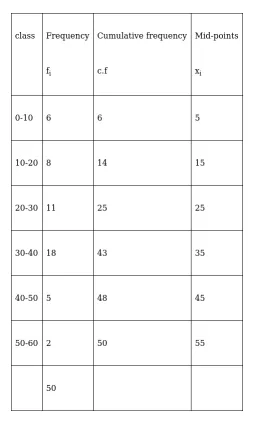 Median $=1+\frac{\frac{\mathrm{N}}{2}-\mathrm{C}}{\mathrm{f}} \times \mathrm{h}$