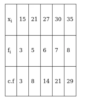 The given observations are in ascending order. Adding a row corresponding to cumulative frequencies to the given data, we get,