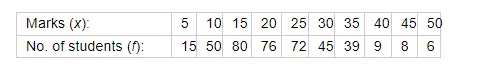 Find the mean from the following frequency distribution of marks at a test in statistics: